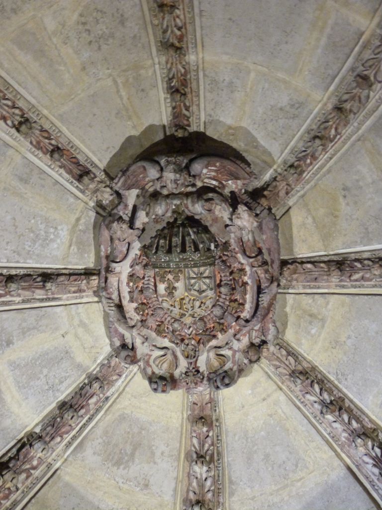 Les religieux Feuillants qui avaient acquis la Maison natale en 1613 avaient obtenu de Louis XIII qu’il soit le fondateur de leur monastère. Pour constituer leur église, ils avaient transformé les salles basses de l’ancien donjon en chapelles qu’ils avaient décorées grâce aux libéralités du roi. En 1619, la chapelle qui était considérée comme le lieu de naissance de saint Bernard et avait abrité un oratoire primitif était dédiée au roi. C’est ainsi que dans cette chapelle le chiffre de Louis XIII se trouve sur chaque entablement des colonnes géminées, sur l’arcade en anse de panier au-dessous des tribunes et quatre fois sur l’entablement sphérique des coupoles. Quant à ses armoiries, elles sont placées sur la clé de voûte. L’écu, au centre, porte deux écussons, l’un aux armes de France avec ses fleurs de lys, accolé à un second aux armes de Navarre avec ses chaînes. Il est tourné vers l’autel de la chapelle. Sa pointe, ornée du L entrelacé de feuilles de lauriers, regarde l’entrée. Ce blason est surmonté de la couronne royale fleuronnée de fleurs de lys. Il est entouré de deux colliers. Le premier est celui de Saint-Michel reconnaissable à ses coquilles et à son médaillon représentant saint Michel terrassant le dragon. Le deuxième est celui du Saint-Esprit formé d’un cordon de fleurs de lys où s’intercalent les L de Louis XIII et d’une croix à quatre branches égales dont l’avers présente une colombe. Un cartouche à enroulements découpés enserre des dauphins en supports. À la partie supérieure, la tête de la dépouille d’un lion surmonte une tête d’ange aux ailes déployées, tandis que les pattes arrières de la bête prennent la place de la queue des dauphins.