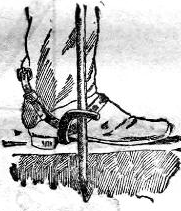 Le plante-paisseaux pouvait se présenter sous la forme d’une tige en bois sur laquelle on fixait des crampons en métal, permettant de pousser avec les sabots[1]. Le sabot lui-même pouvait aussi être muni d’un « fiche-échalas » ou « croc à échalas » ou « clé-ficheuse ». C’était un crochet fixé à gauche ou à droite du sabot selon que le vigneron était droitier ou gaucher. Il pouvait être fixe ou amovible. Dans ce dernier cas, il s’attachait au sabot au moyen d’une sangle. Les deux parties métalliques crantées adhéraient de part et d’autre à l’échalas[2]. C’était cet instrument qui était jugé le plus pratique dans notre région. Malgré tout, l’échalassement était un rude labeur. Il exposait les vignerons à des accidents et le piétinement de l’ouvrier autour du cep pour enfoncer l’échalas détruisait en partie le bon effet du labour.